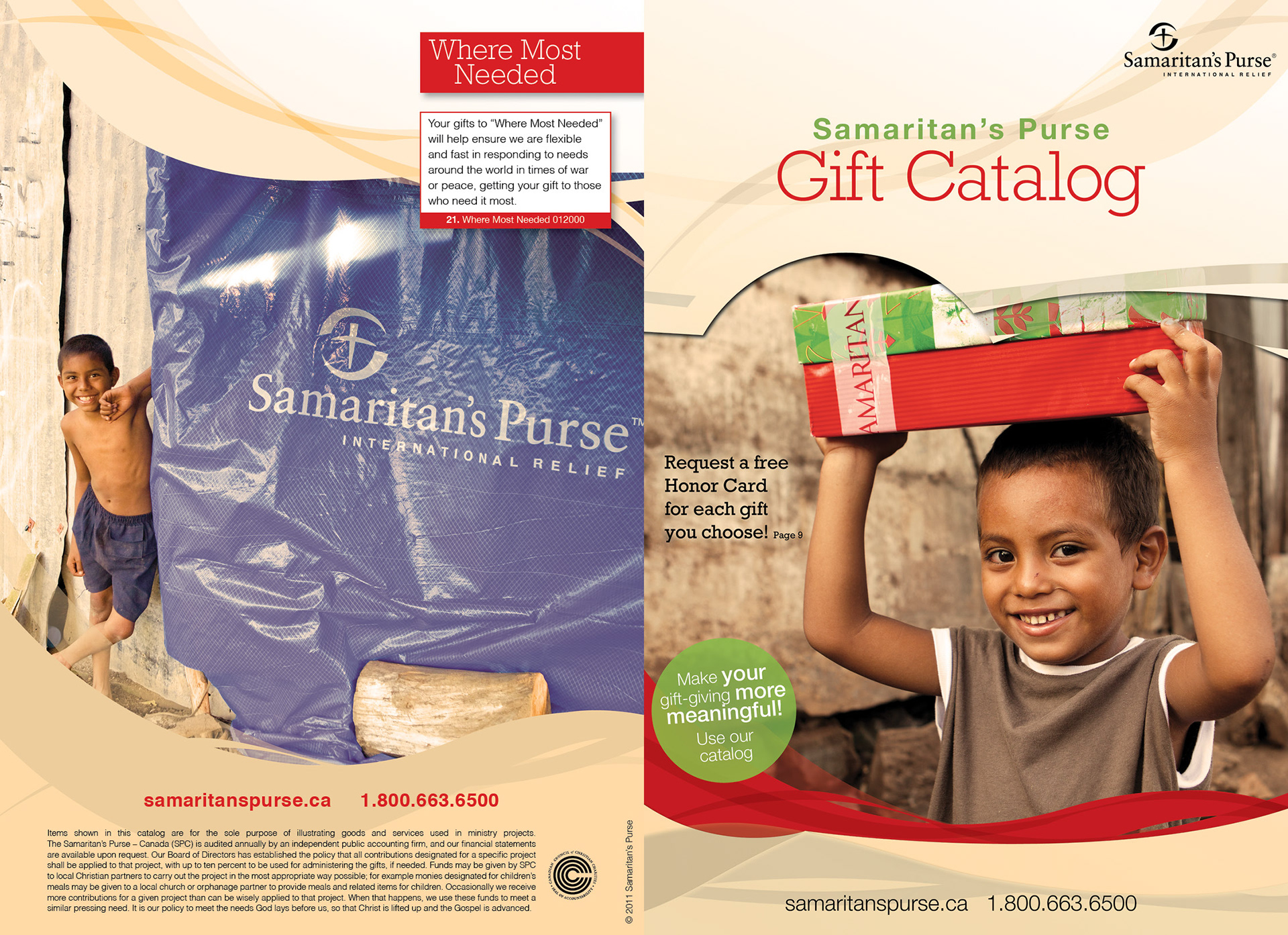 I designed Samaritan’s Purse Canada's Gift Catalogs from 2009-2011. They have a print run of approximately 100,000 annually. This is the 2011 edition.